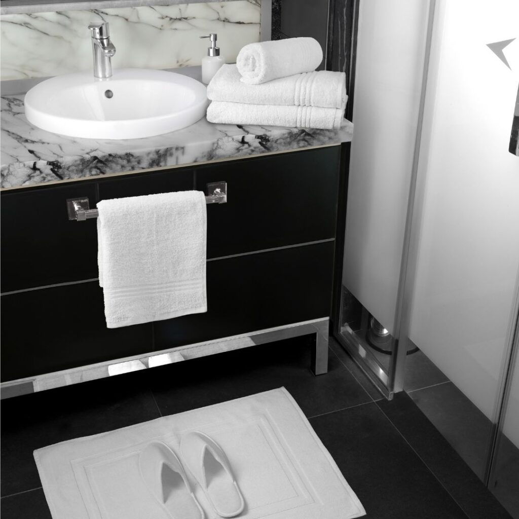 Das Design unseres Handtuchs Riviera mit den 3 Tiefstreifen ist eine häufig gewählte Option im Hotelbetrieb, die einen klassischen und ansprechenden Look bietet.